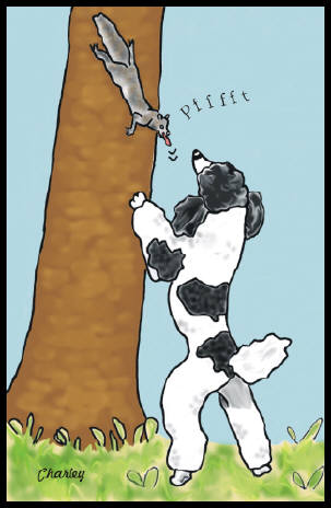 Historically, Standard Poodles are supposed to be attracted to ducks and other water fowl; however, Jyah mainly wants to get squirrels. What provokes him so much about squirrels is that they are so darn rude! "Grrrr... why don't you come down here and say that!!" Were Jyah human, he would be a doctor. He's always tending to Sydney . . . whether she wants him to or not. Although Standard Poodles are far removed from their wolf ancesters, most I've known have just as lovely singing voices. "But, there's nothing wrong with my wrist, Jyah." "I loooove to howl . . . . . . gosh, I hope those wolves don't think I'm calling them." |